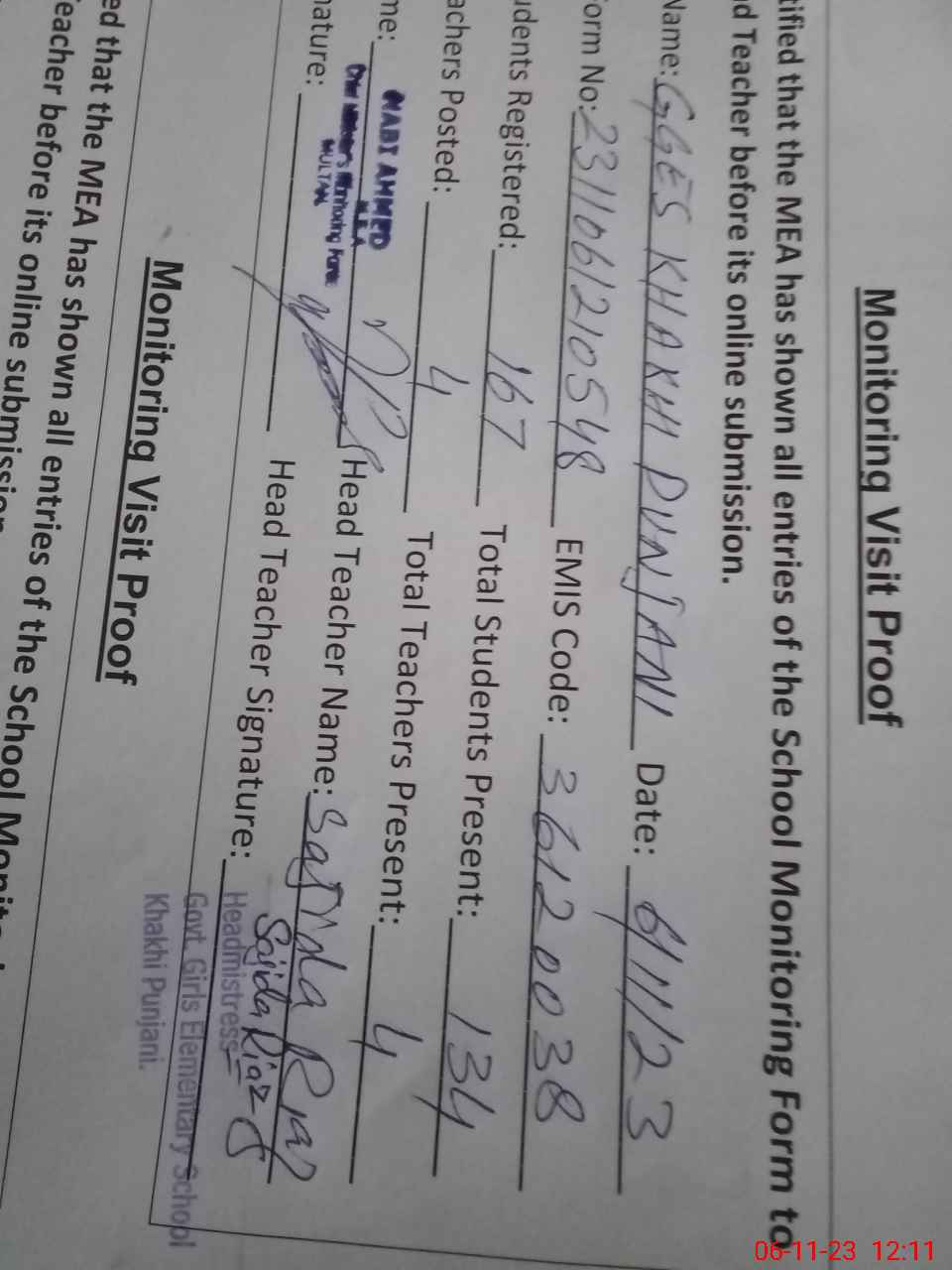 | EMIS Code: 36120038 | Name of School: GGES KHAKHI PUNJANI SHUJABAD | |||