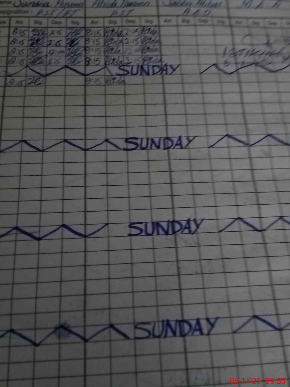 | CNIC | Full Name | Designation | R/C | Absence During Last Calender Month |