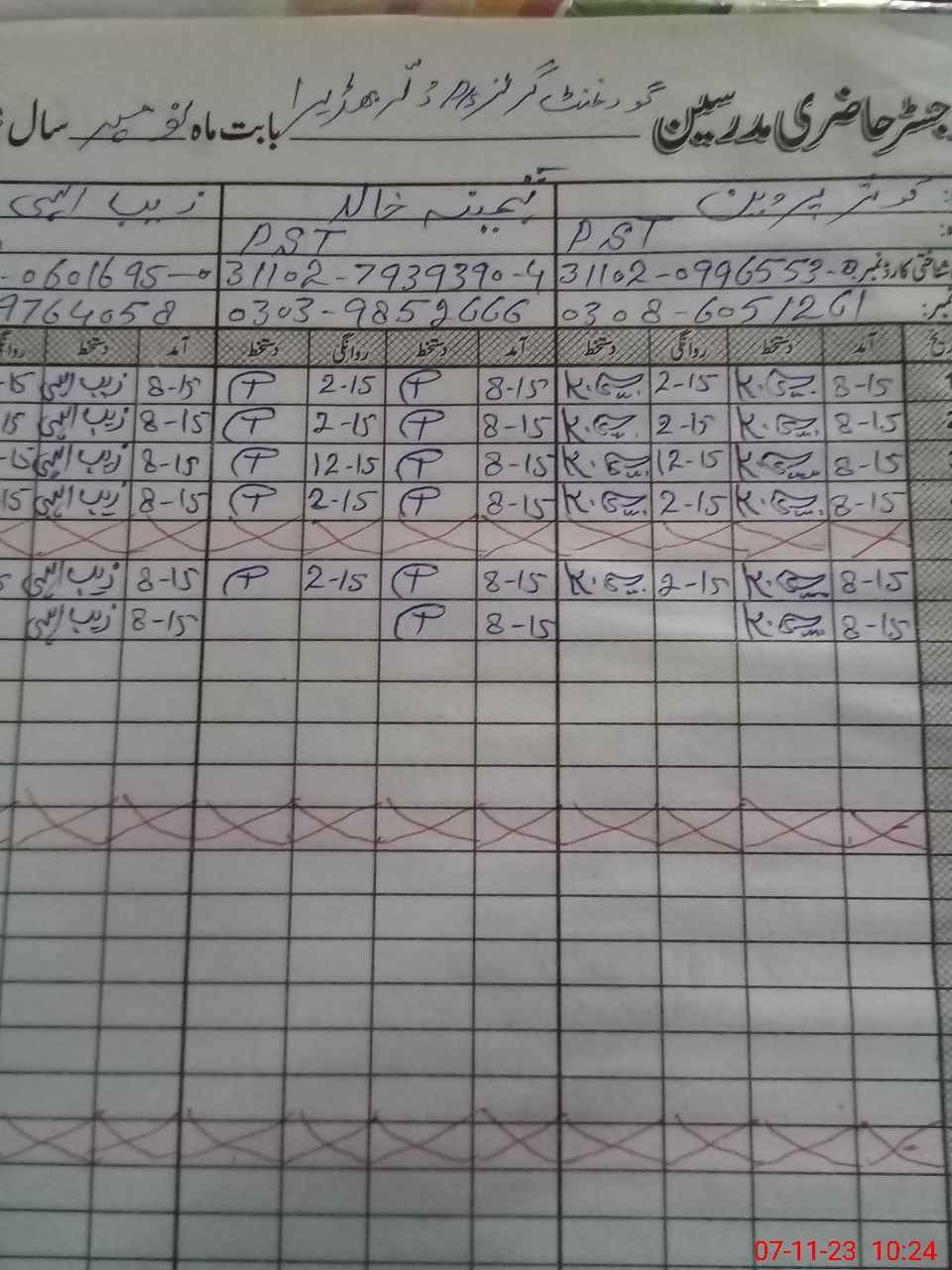 | CNIC | Full Name | Designation | R/C | Absence During Last Calender Month |