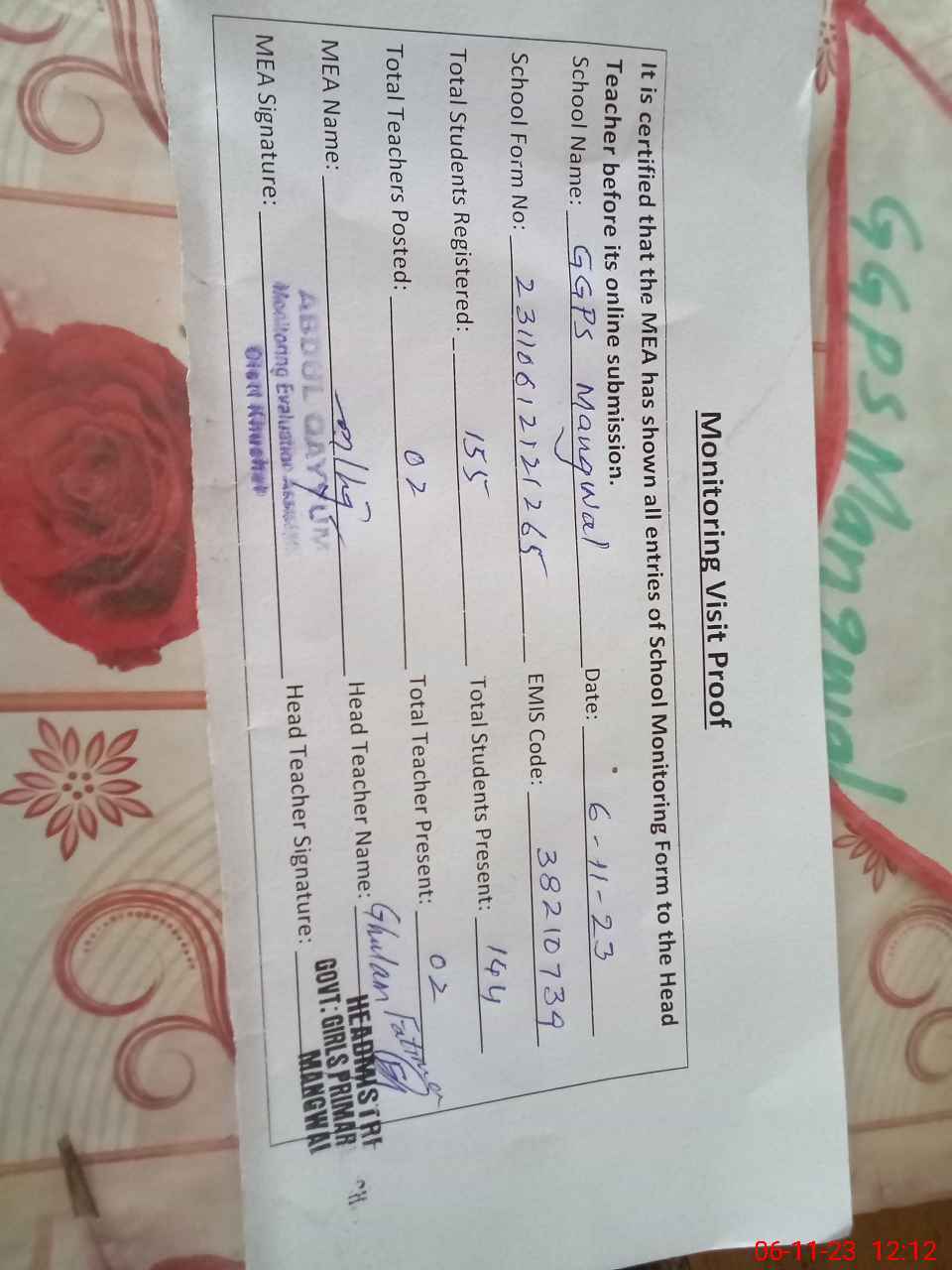 | EMIS Code: 38210739 | Name of School: GGPS MANGWAL | |||