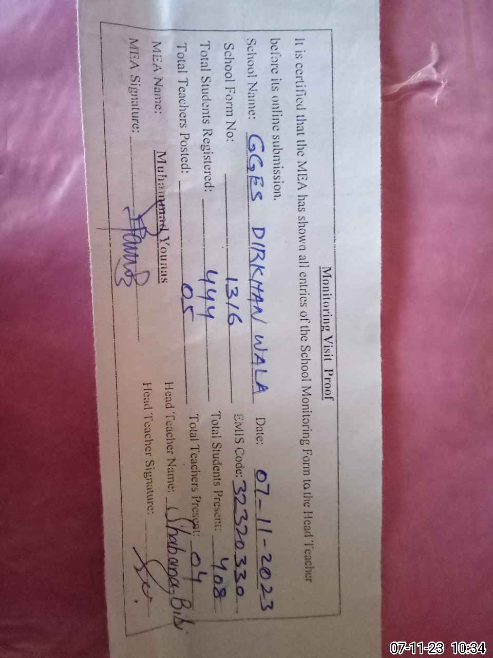 | EMIS Code: 32320330 | Name of School: GGES DIRKHAN WALA | |||