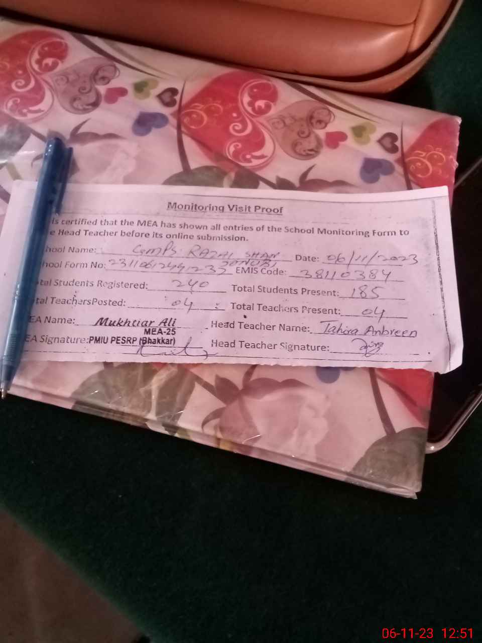 | EMIS Code: 38110384 | Name of School: GMPS RAZI SHAH JANUBI PO NOTAK | |||