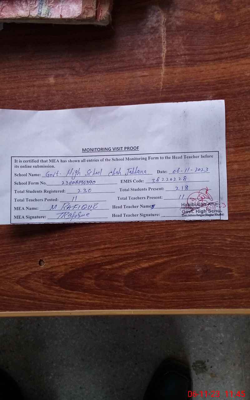 | EMIS Code: 38220228 | Name of School: GHS CHAH JABHANA RANGPUR | |||