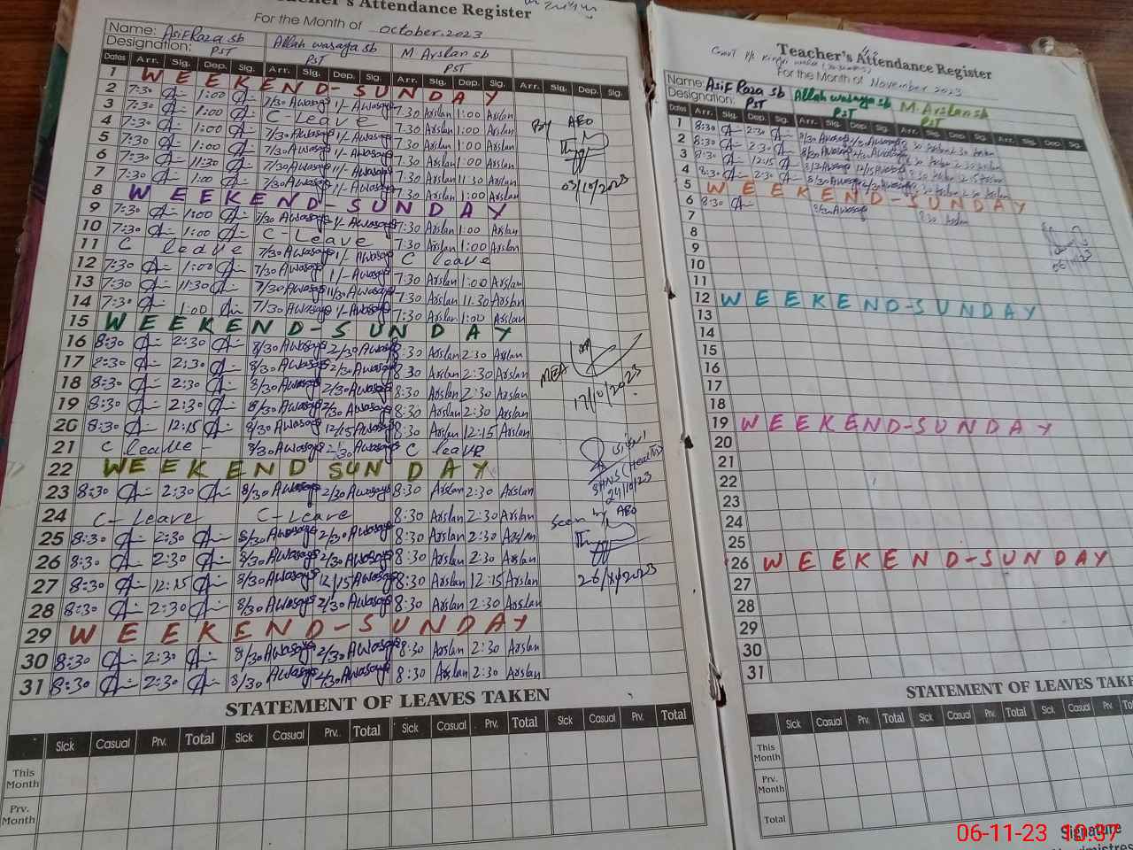 | CNIC | Full Name | Designation | R/C | Absence During Last Calender Month |
