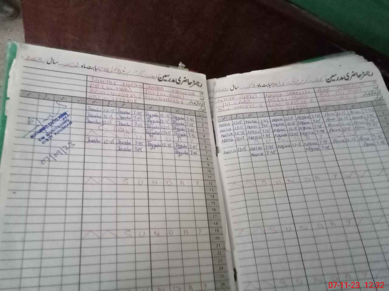 | CNIC | Full Name | Designation | R/C | Absence During Last Calender Month |