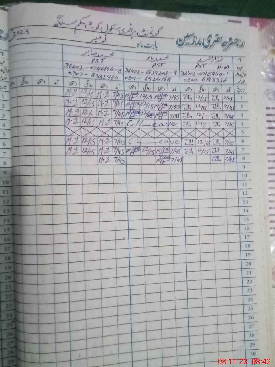 | Name: MU**** AH**** Designation: (School Headmaster's/Headmistress's) PST Phone/Cell Number: 03**** |
