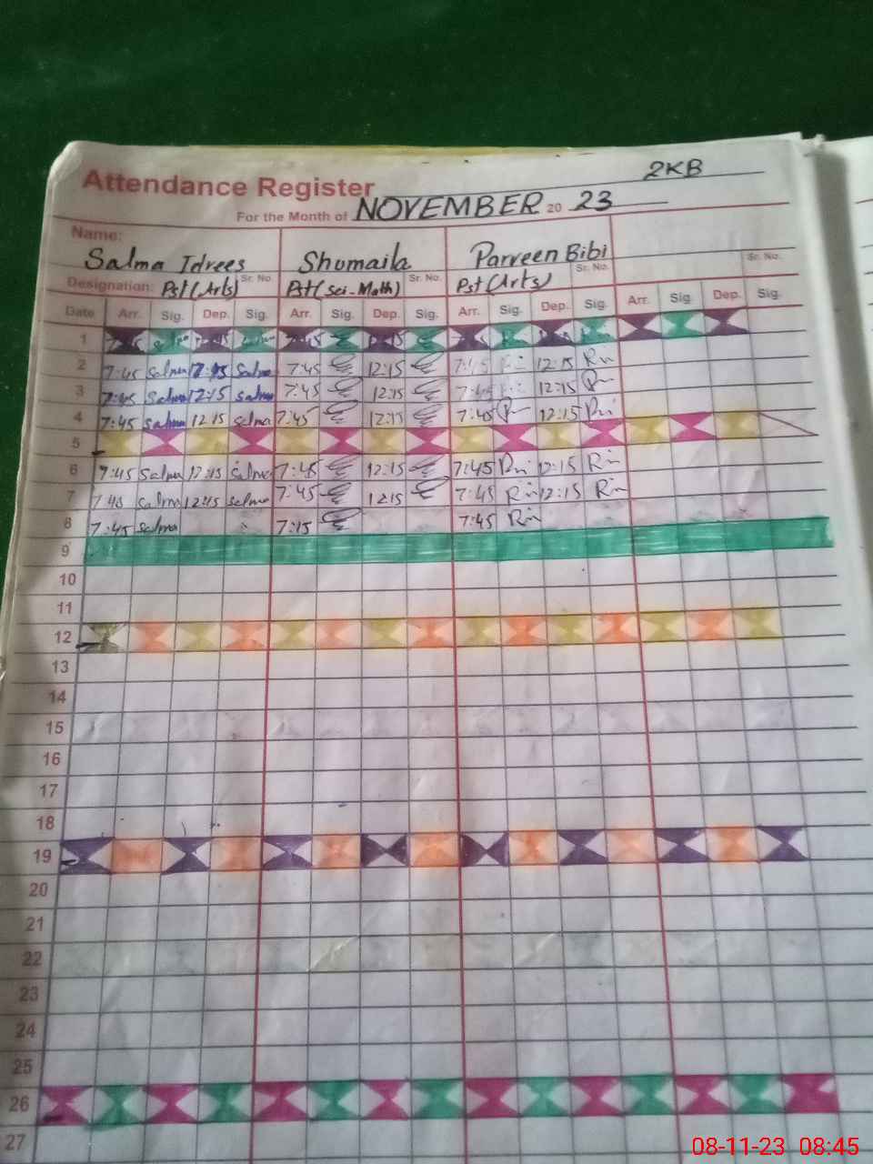 | No. of Students Present - Female | 0 | 0 | 34 | 24 | 29 | 21 | 17 | 17 | 142 | |||||||