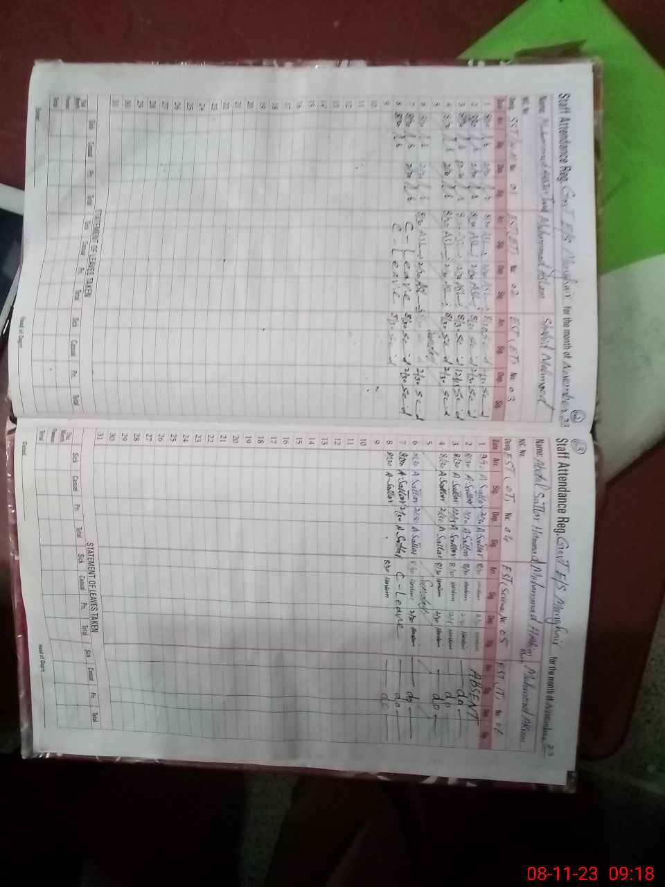 | 31**** | Me**** Ak**** | 1 | 5 | 0 | 20 | 0 | 0 | 0 | 0 | 0 | 5 | Absent (Un-Authorized) | |