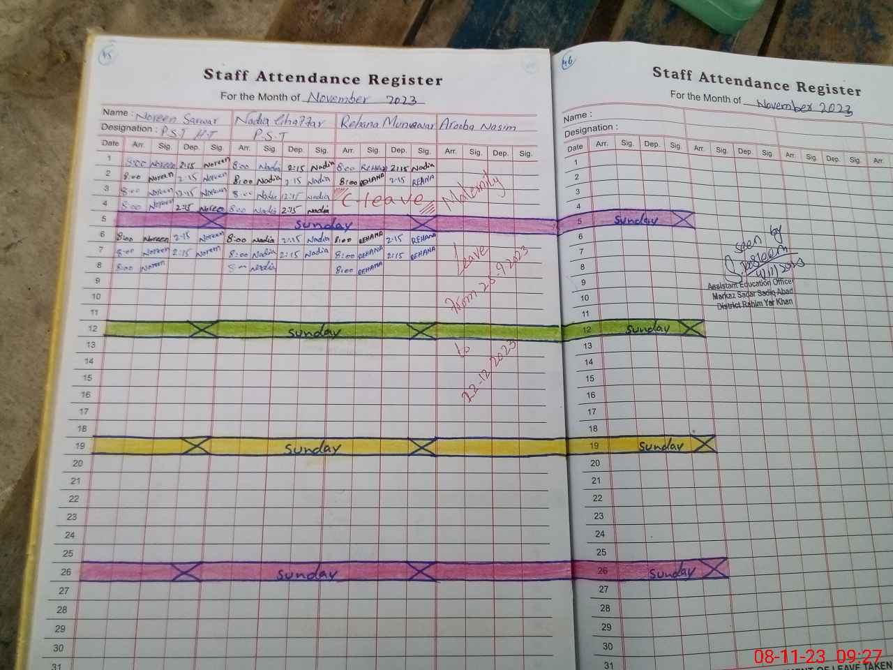 | 31**** | Ar**** Na**** Wa**** | PST | Regular | 8 | 0 | 0 | 6 | 0 | 0 | 0 | 0 | 2 | Maternity |