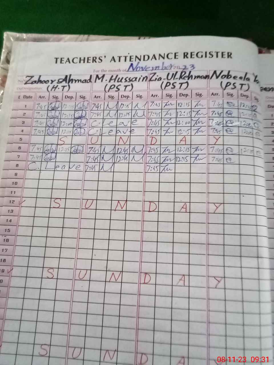 | CNIC | Full Name | Designation | R/C | Absence During Last Calender Month |