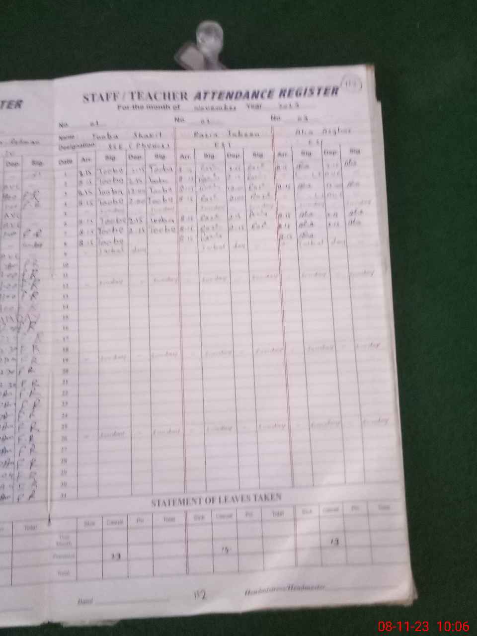 | Name: To**** Sh**** Designation: (School Headmaster's/Headmistress's) IC HM S S E (Physics) Phone/Cell Number: 03**** |