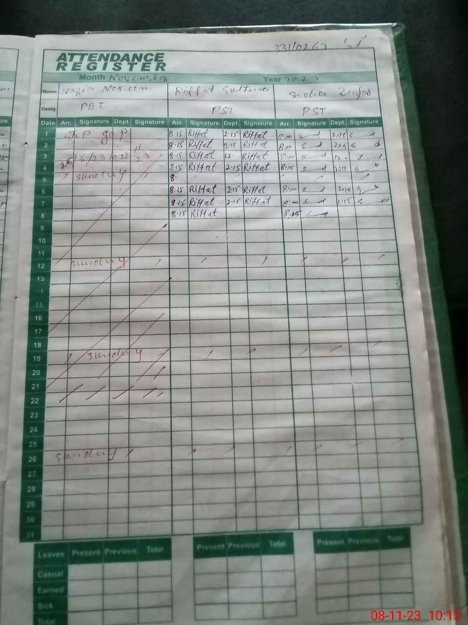 | CNIC | Full Name | Designation | R/C | Absence During Last Calender Month |
