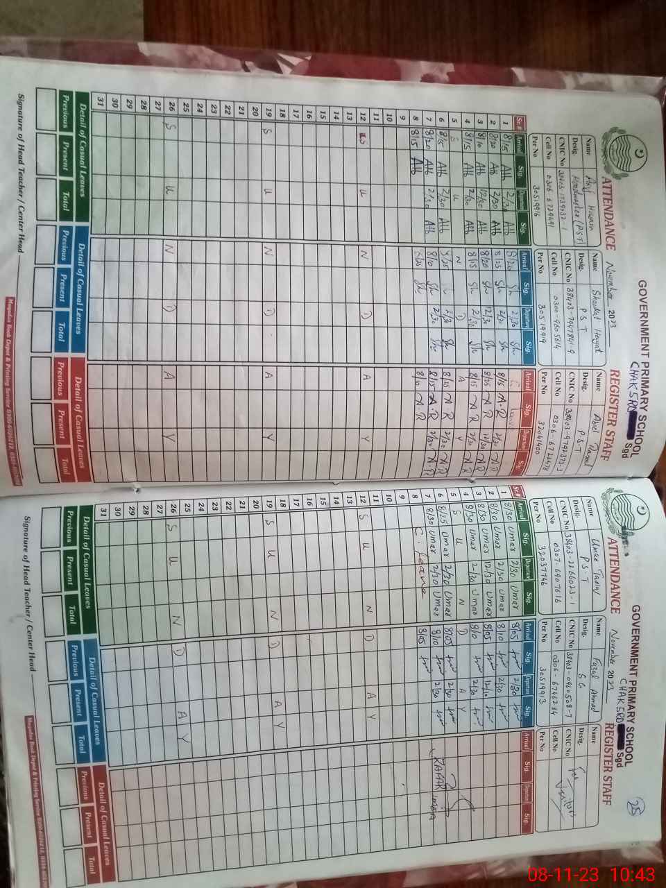 | Name: Um**** Ta**** Designation: (School Headmaster's/Headmistress's) PST Phone/Cell Number: 03**** |