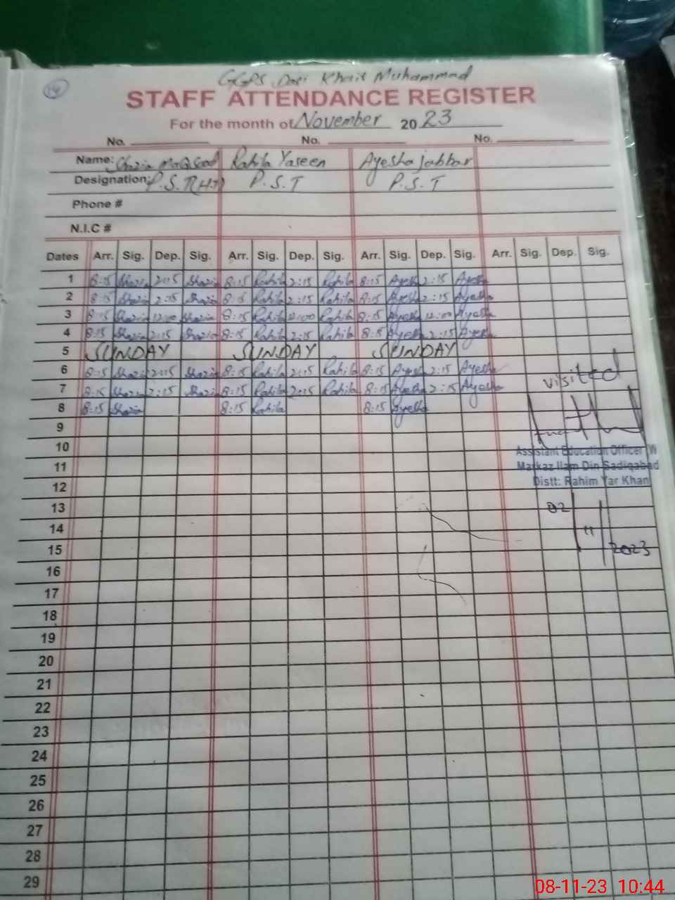 | Name: Sh**** Ma**** Designation: (School Headmaster's/Headmistress's) PST Phone/Cell Number: 03**** |