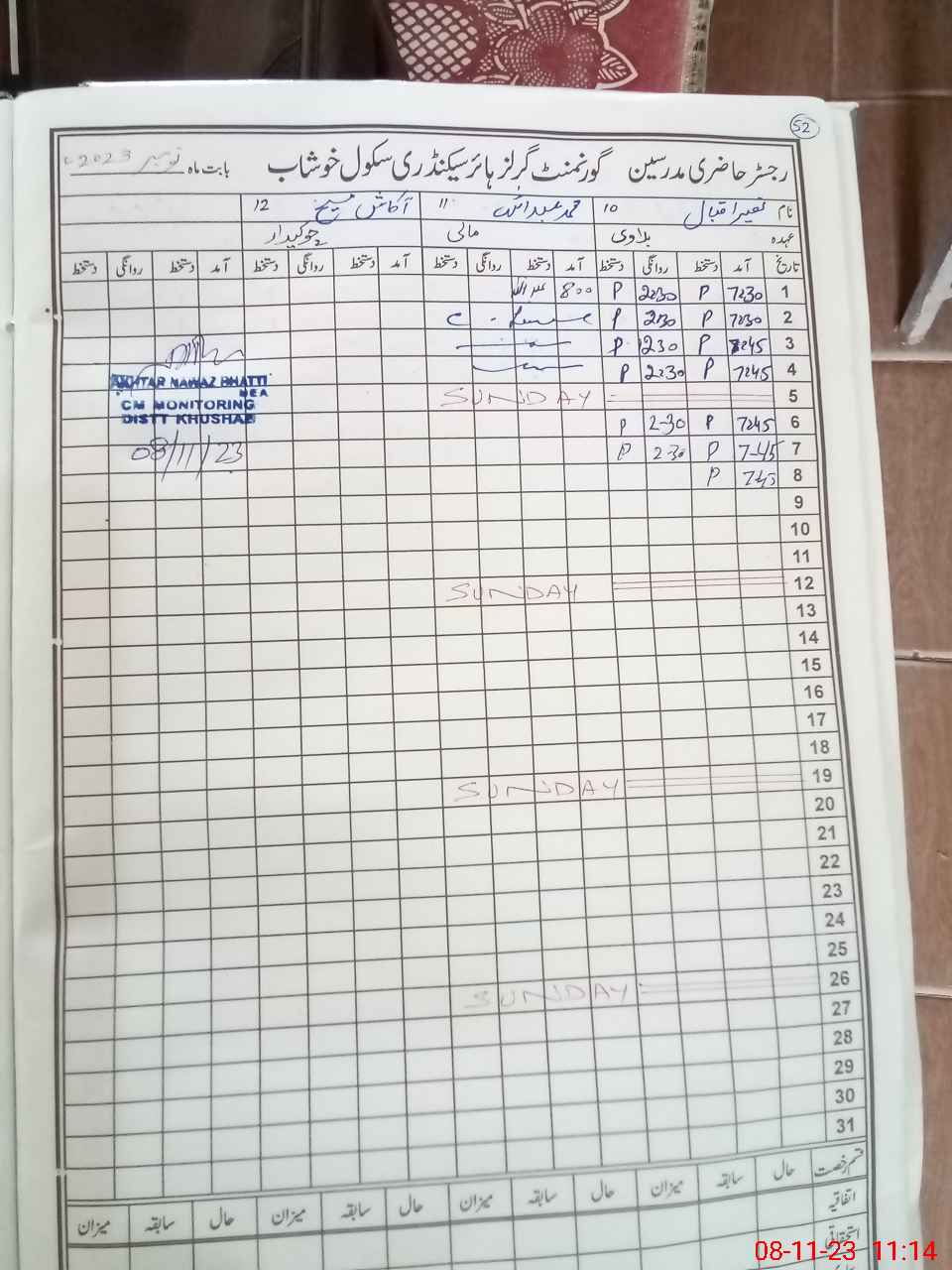 | District: KHUSHAB | Tehsil: KHUSHAB | Markaz: KHUSHAB (FEMALE) | Level: H.Sec. | |