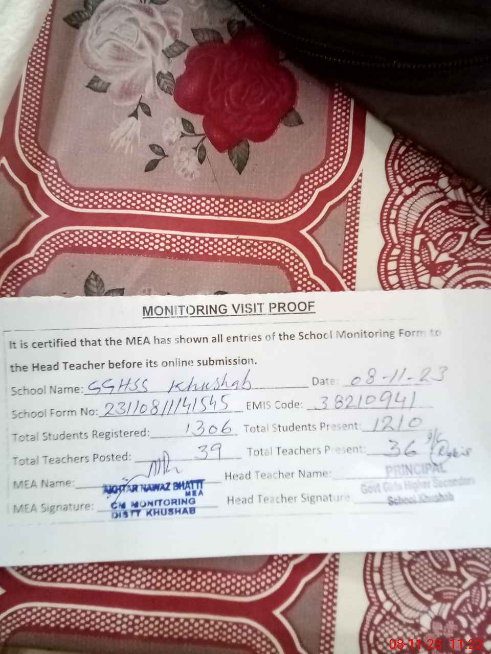 | EMIS Code: 38210941 | Name of School: GGHSS KHUSHAB GEROTE ROAD | |||
