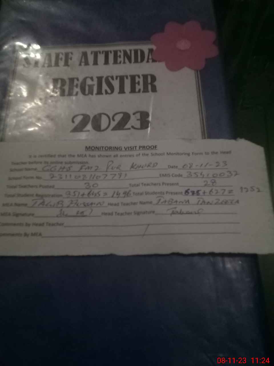 | Attendance Register | Head Teacher | MEA with School | Visit Proof |