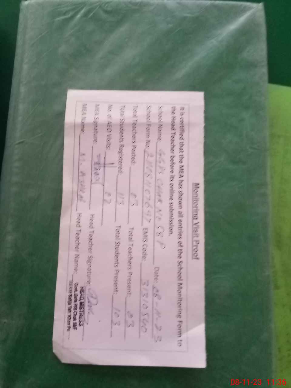 | Attendance Register | Head Teacher | MEA with School | Visit Proof |