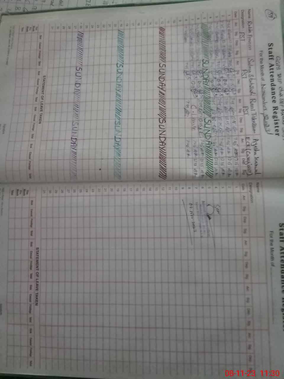 | CNIC | Full Name | Designation | R/C | Absence During Last Calender Month |