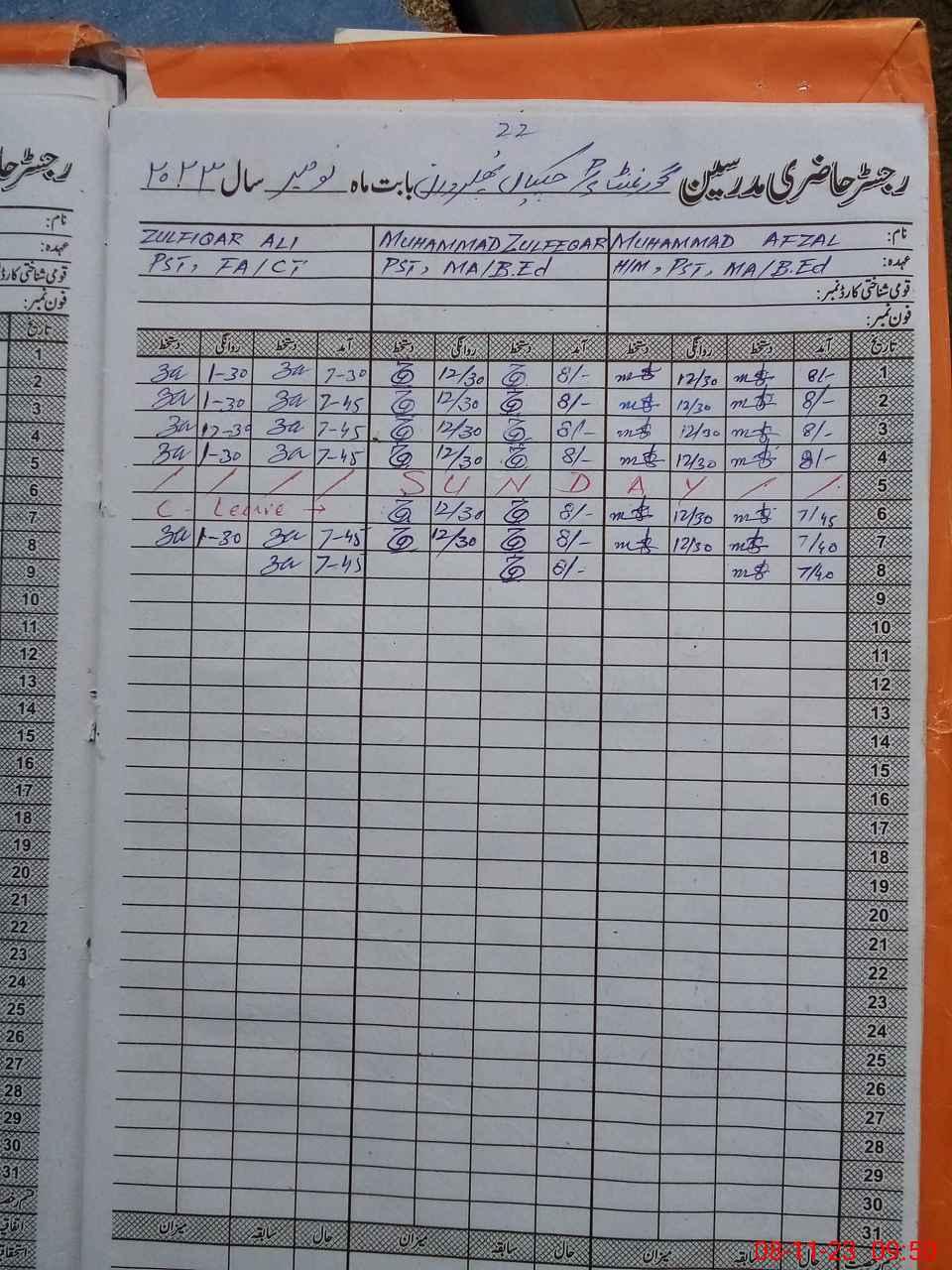 | Name: Zu**** Al**** Designation: (School Headmaster's/Headmistress's) PST Phone/Cell Number: 03**** 60**** |