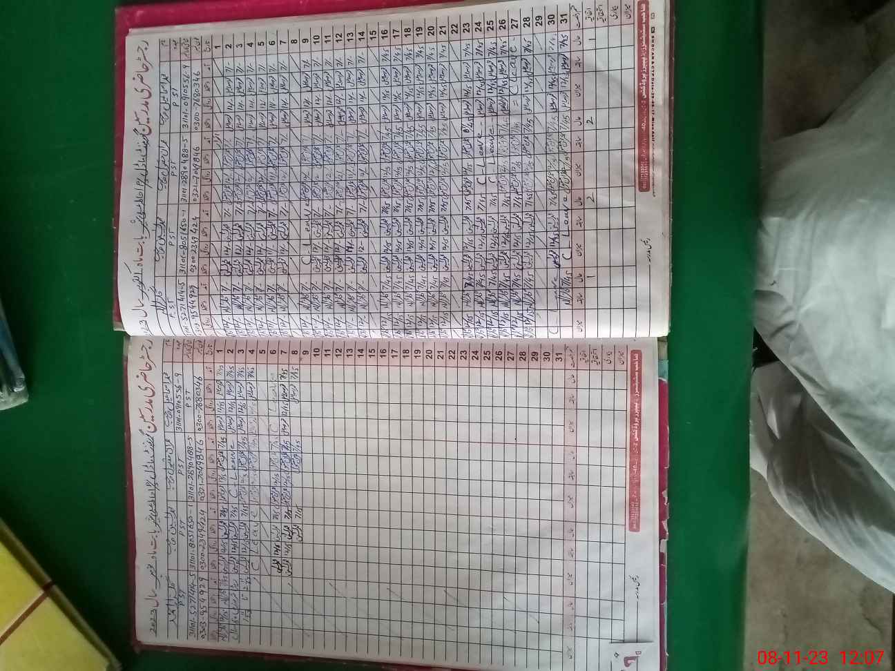 | CNIC | Full Name | Designation | R/C | Absence During Last Calender Month |
