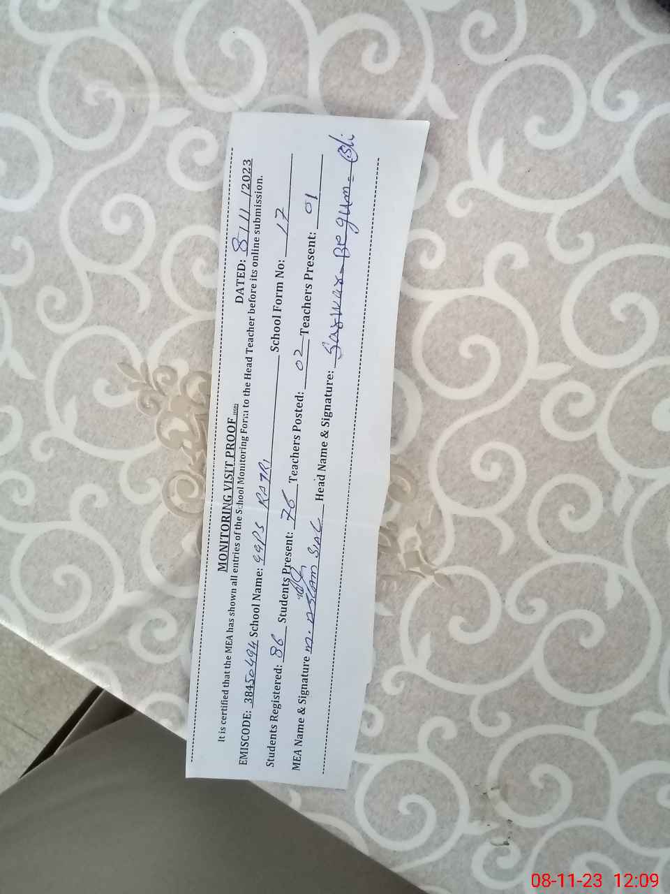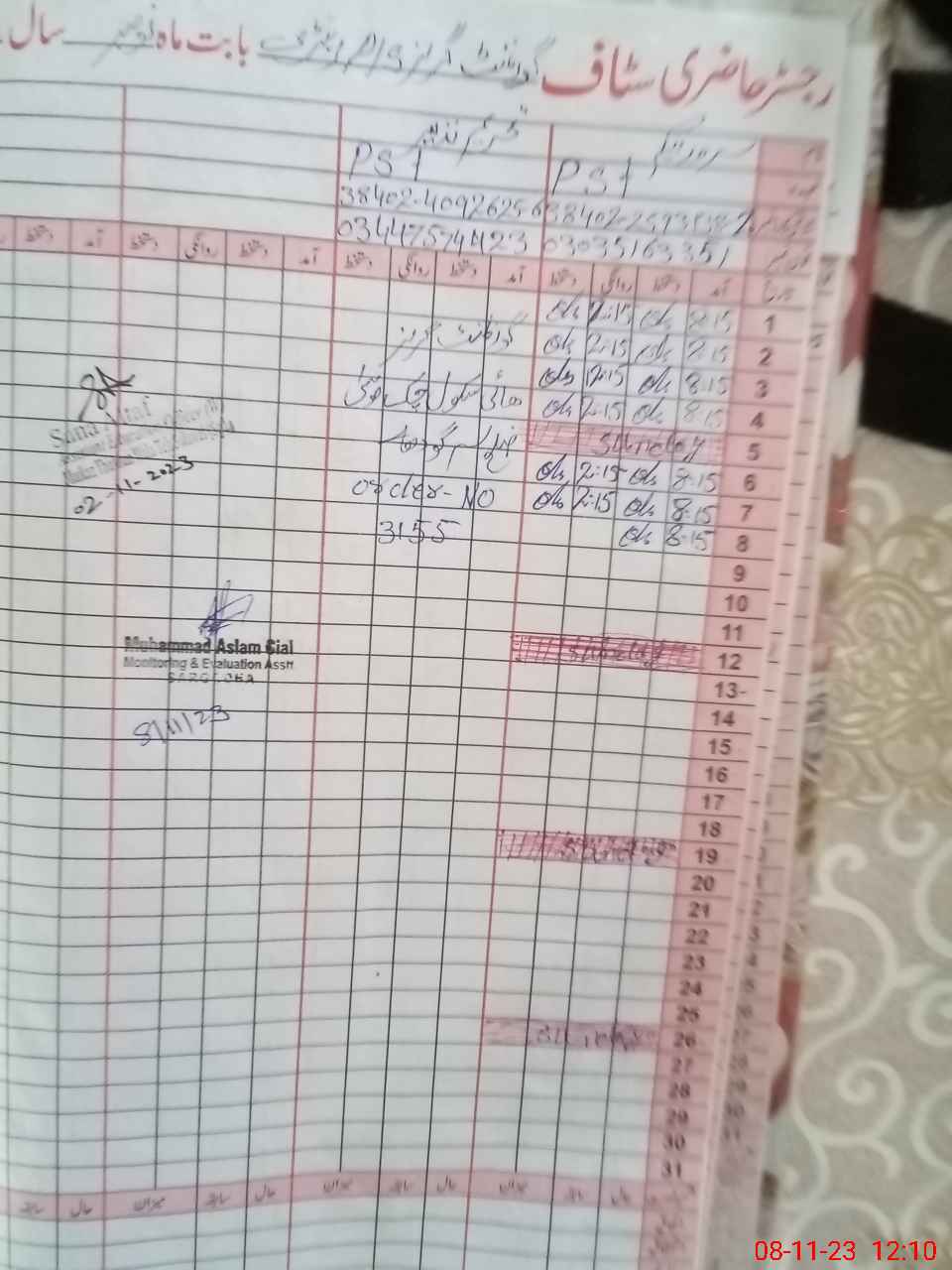 | Name: SA**** BE**** Designation: (School Headmaster's/Headmistress's) PST Phone/Cell Number: 03**** |