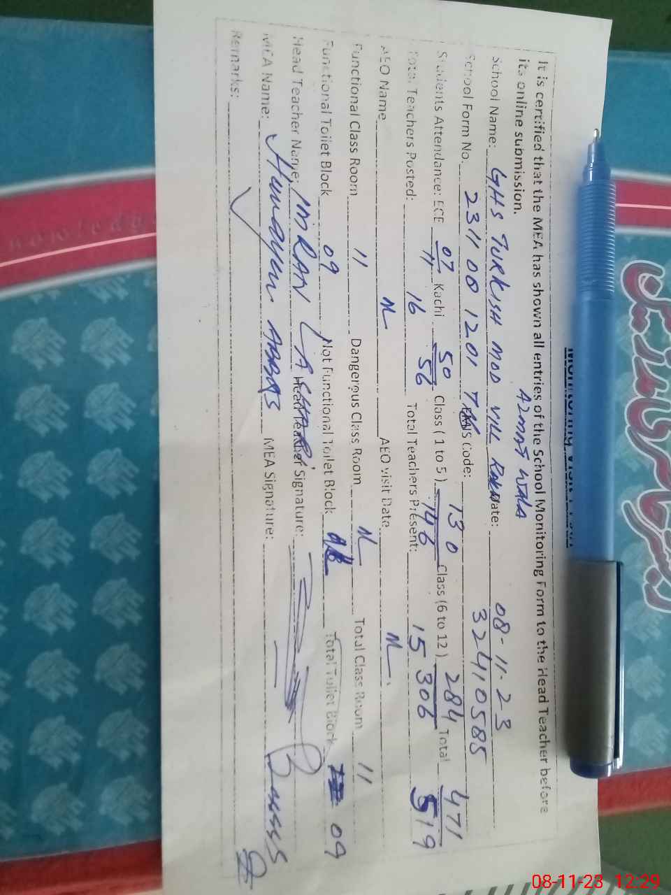 | Attendance Register | Head Teacher | MEA with School | Visit Proof |