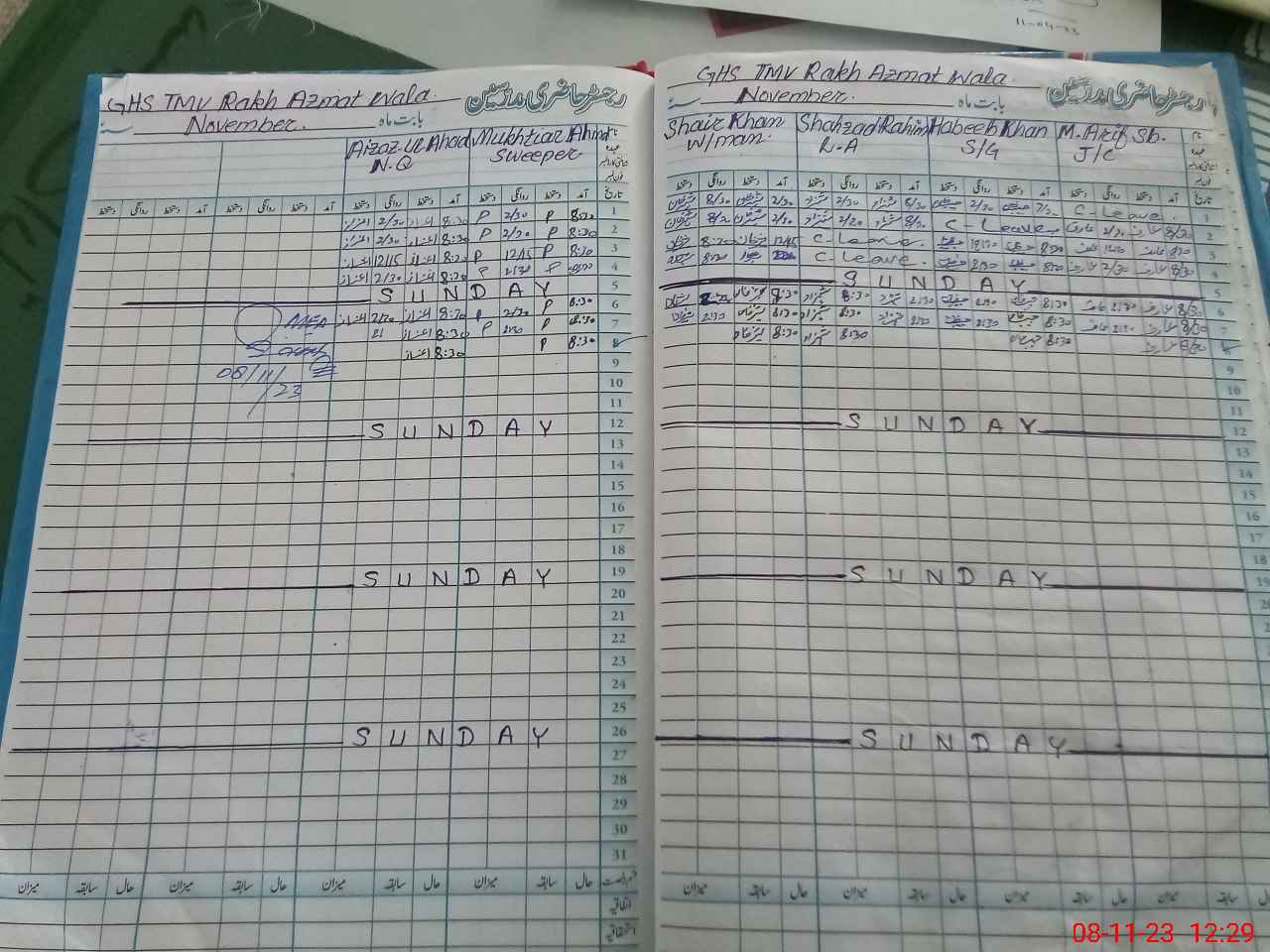 | CNIC | Full Name | Designation | R/C | Absence During Last Calender Month |