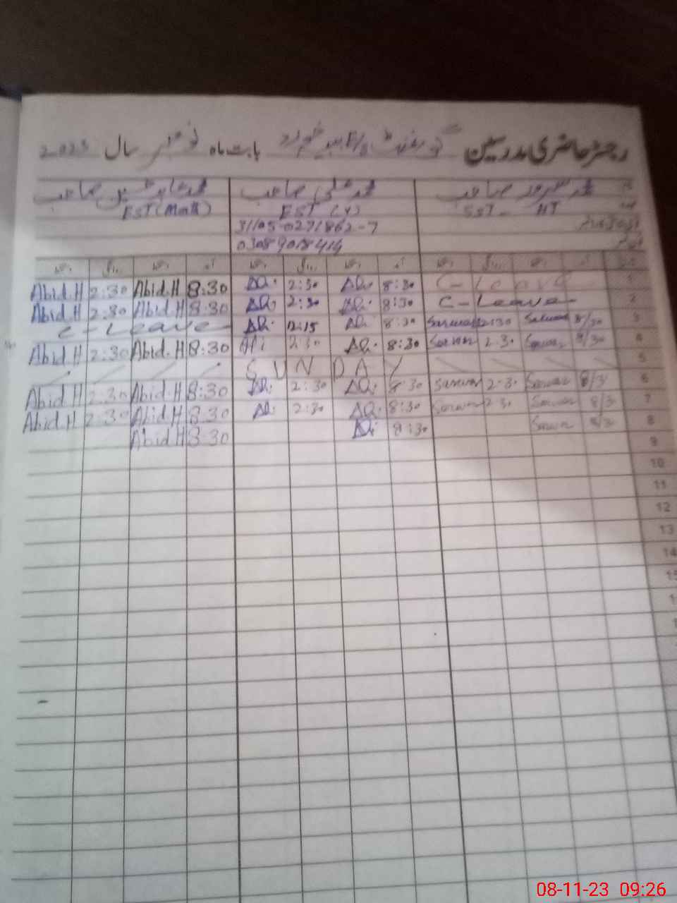 | Name: Za**** Ja**** Designation: (School Headmaster's/Headmistress's) EST Phone/Cell Number: 03**** |