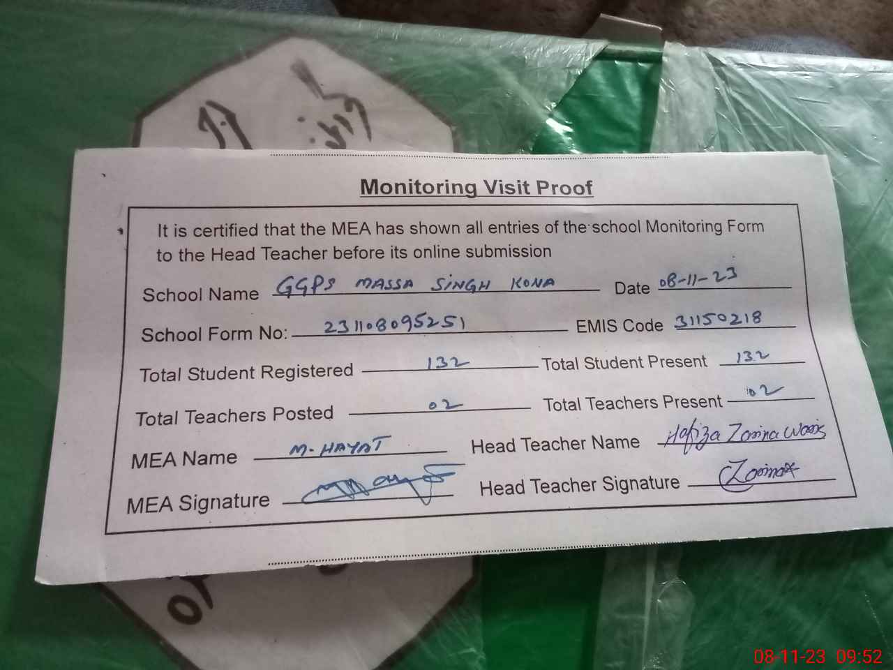 | EMIS Code: 31150218 | Name of School: GGPS MASSA SINGH KOHNA | |||