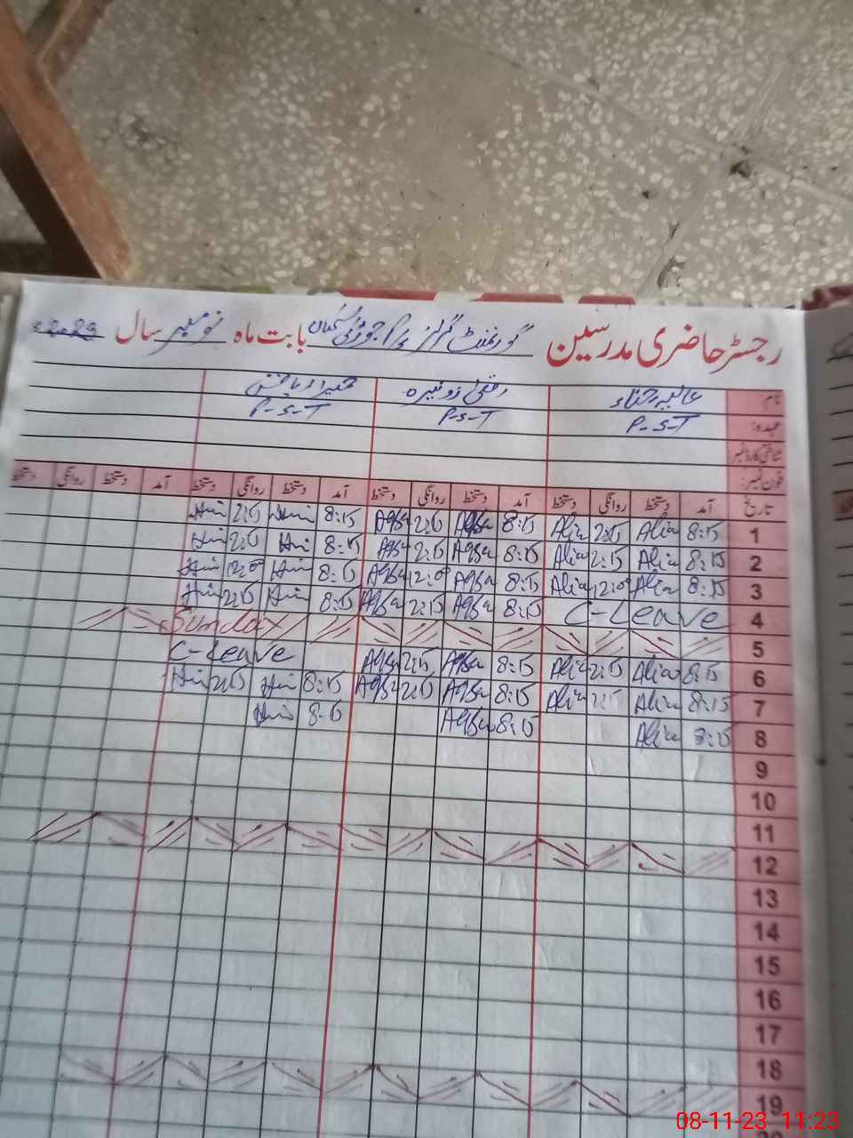 | CNIC | Full Name | Designation | R/C | Absence During Last Calender Month |