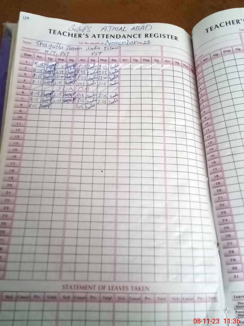 | Monitoring Date: 08-11-2023 | Start Time: 08-11-2023 11:17 AM | End Time: 08-11-2023 11:42 AM | Name of MEA: Sa**** ulHa**** | |