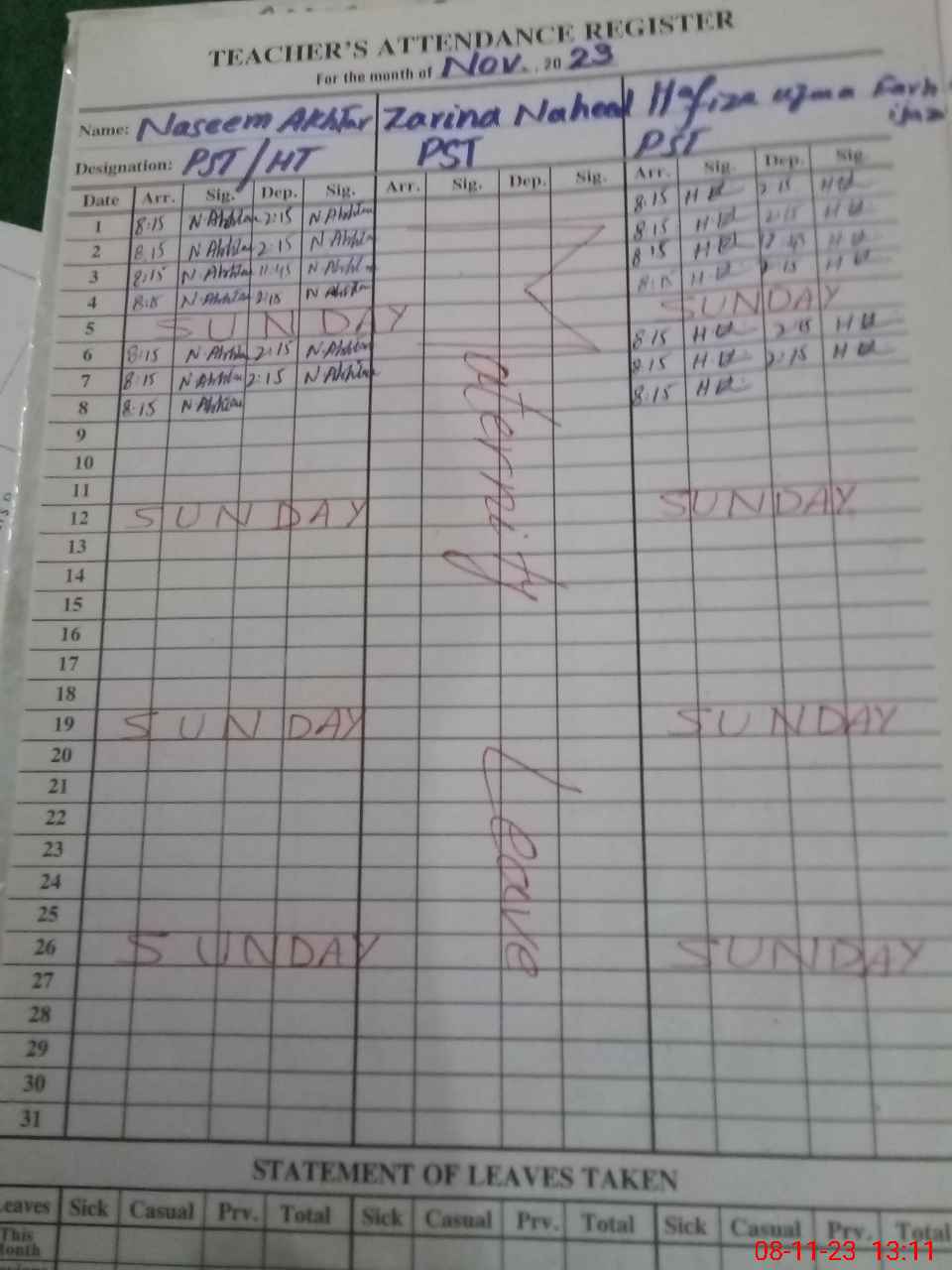 | 33**** | Za**** Na**** | PST | Regular | 31 | 0 | 0 | 31 | 0 | 0 | 0 | 0 | 0 | Maternity |