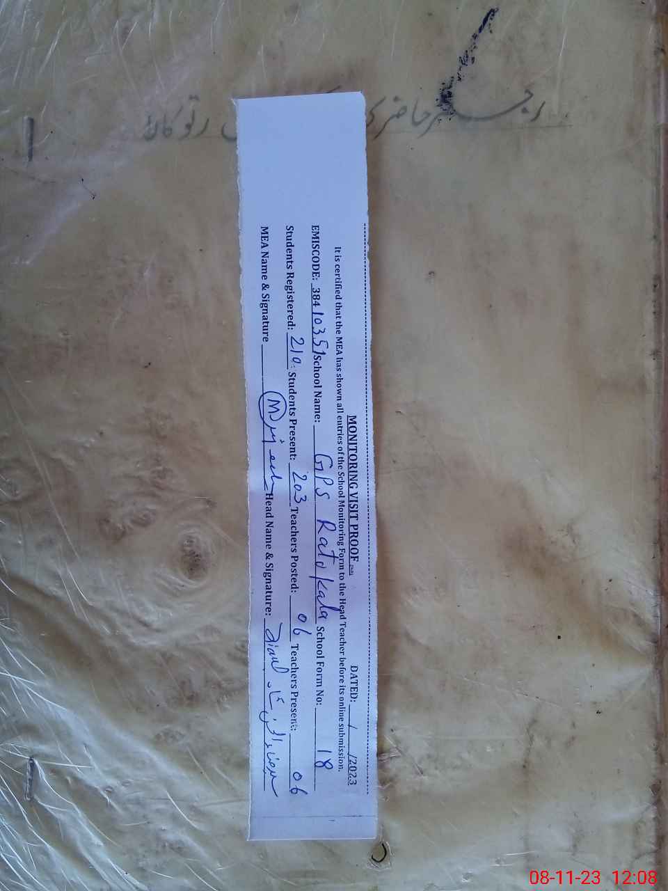| EMIS Code: 38410351 | Name of School: GPS RATTO KALA | |||