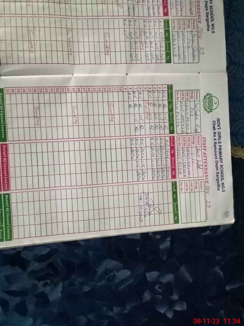 | CNIC | Full Name | Designation | R/C | Absence During Last Calender Month |