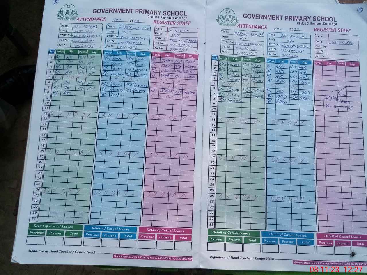 | CNIC | Full Name | Designation | R/C | Absence During Last Calender Month |