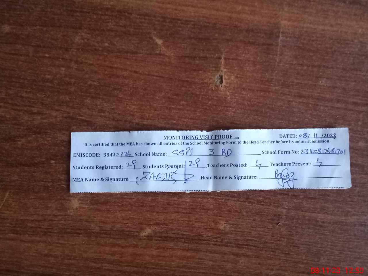 | EMIS Code: 38420724 | Name of School: GGPS CHAK NO.3 REMOUNT DEPOT | |||