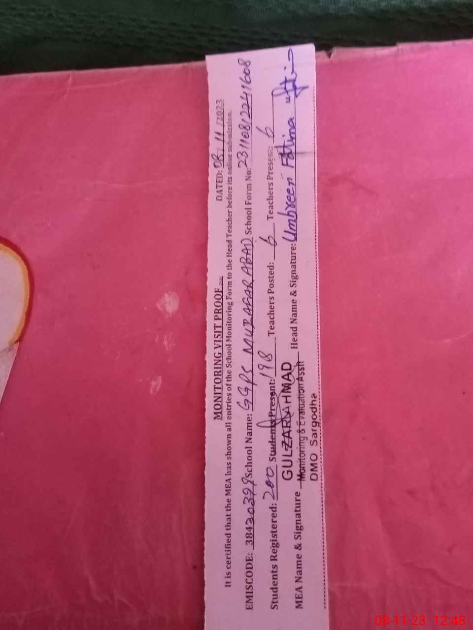| Attendance Register | Head Teacher | MEA with School | Visit Proof |