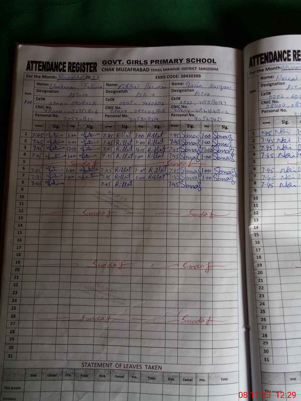 | Name: UM**** FA**** Designation: (School Headmaster's/Headmistress's) PST Phone/Cell Number: 03**** |