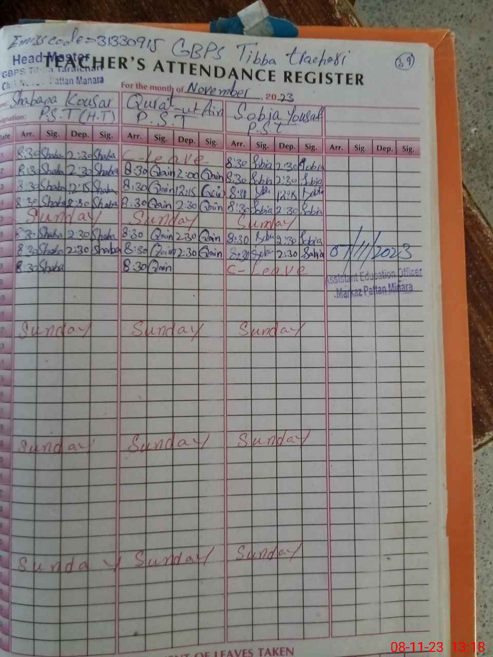 | 61**** | Mu**** Am**** Kh**** | PST | Temporary | 0 | 22 | 0 | 0 | 0 | 0 | 0 | 0 | 0 | Absent (Un-Authorized) |