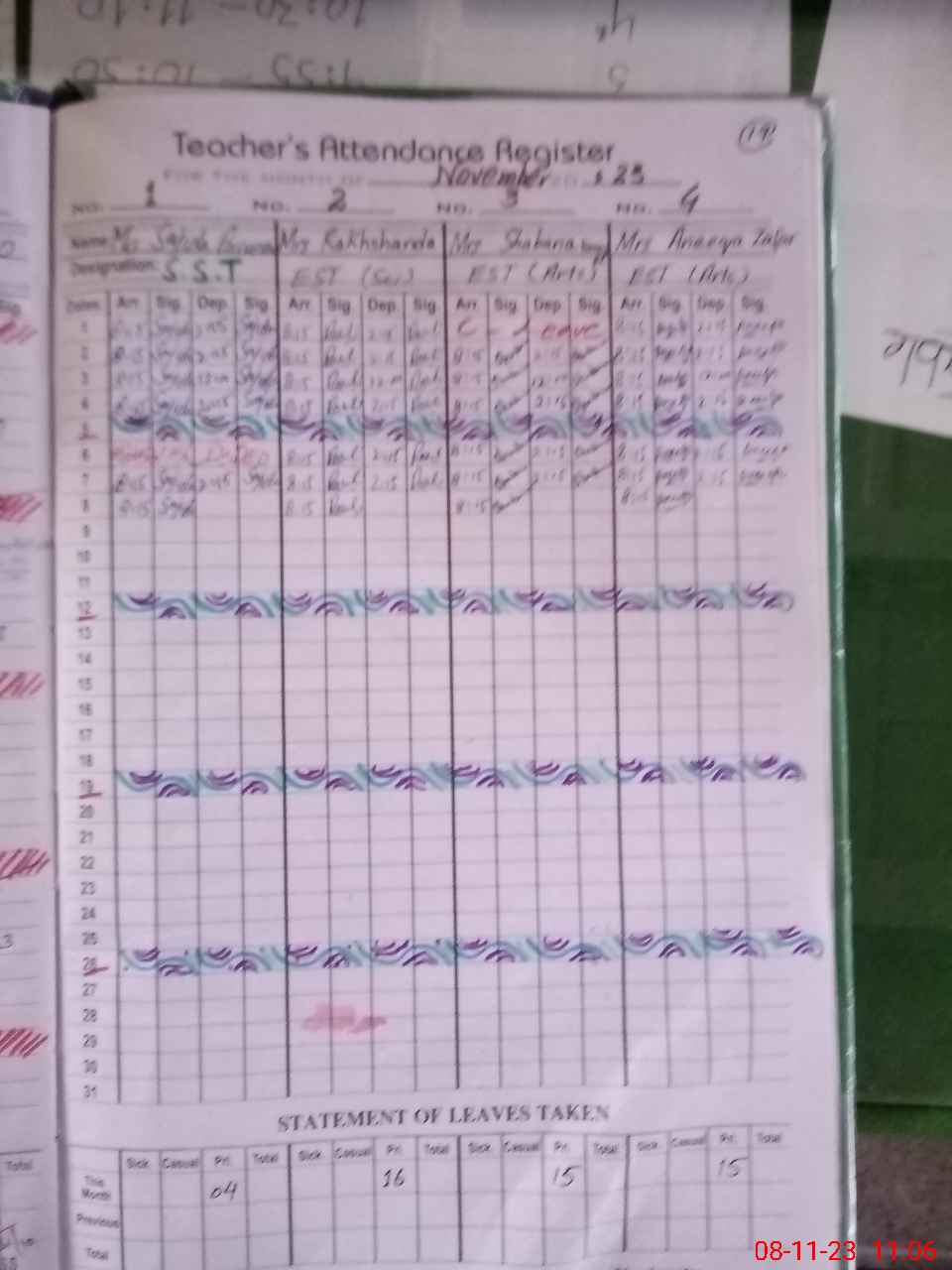 | CNIC | Full Name | Designation | R/C | Absence During Last Calender Month |