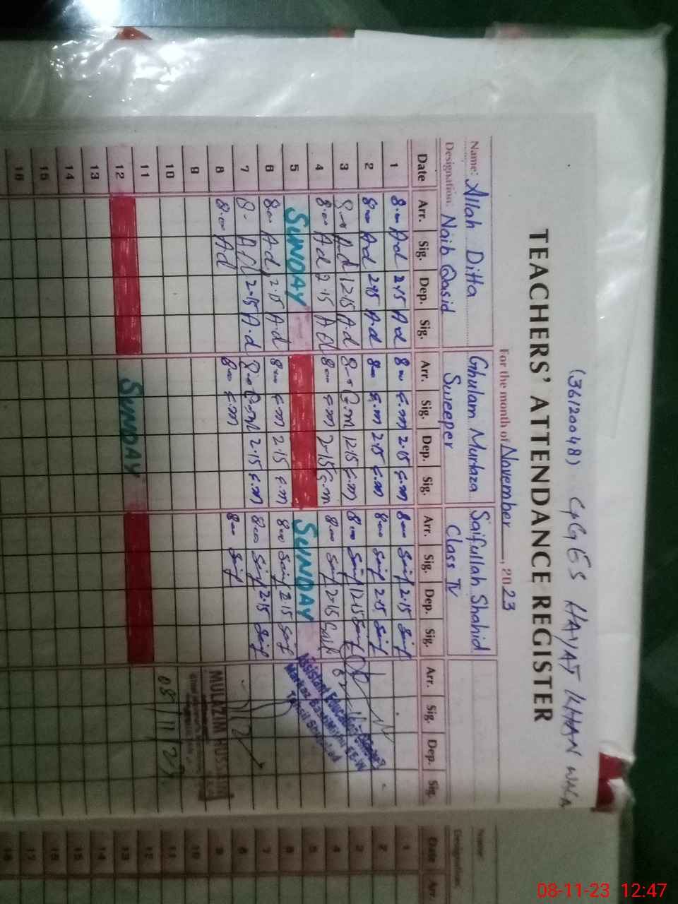 | Name: Ro**** Ka**** Designation: (School Headmaster's/Headmistress's) SSE (Urdu) Phone/Cell Number: 03**** |