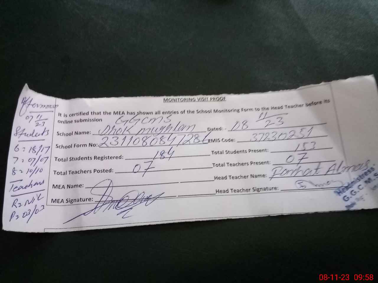| EMIS Code: 37230251 | Name of School: GGCMS DHOK MUGHLAN | |||