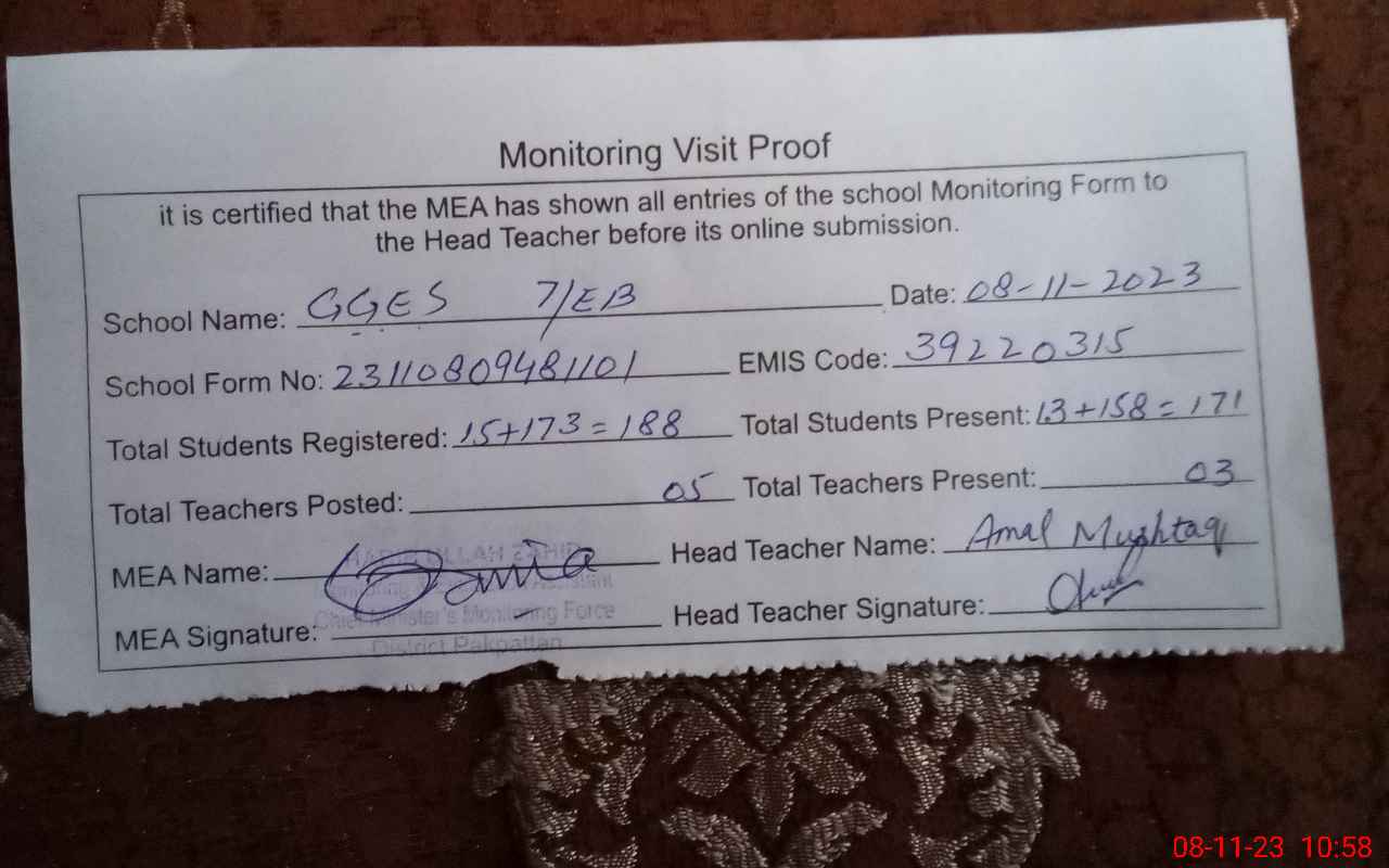 | EMIS Code: 39220315 | Name of School: GGES 7 EB POST OFFICE 7 EB | |||