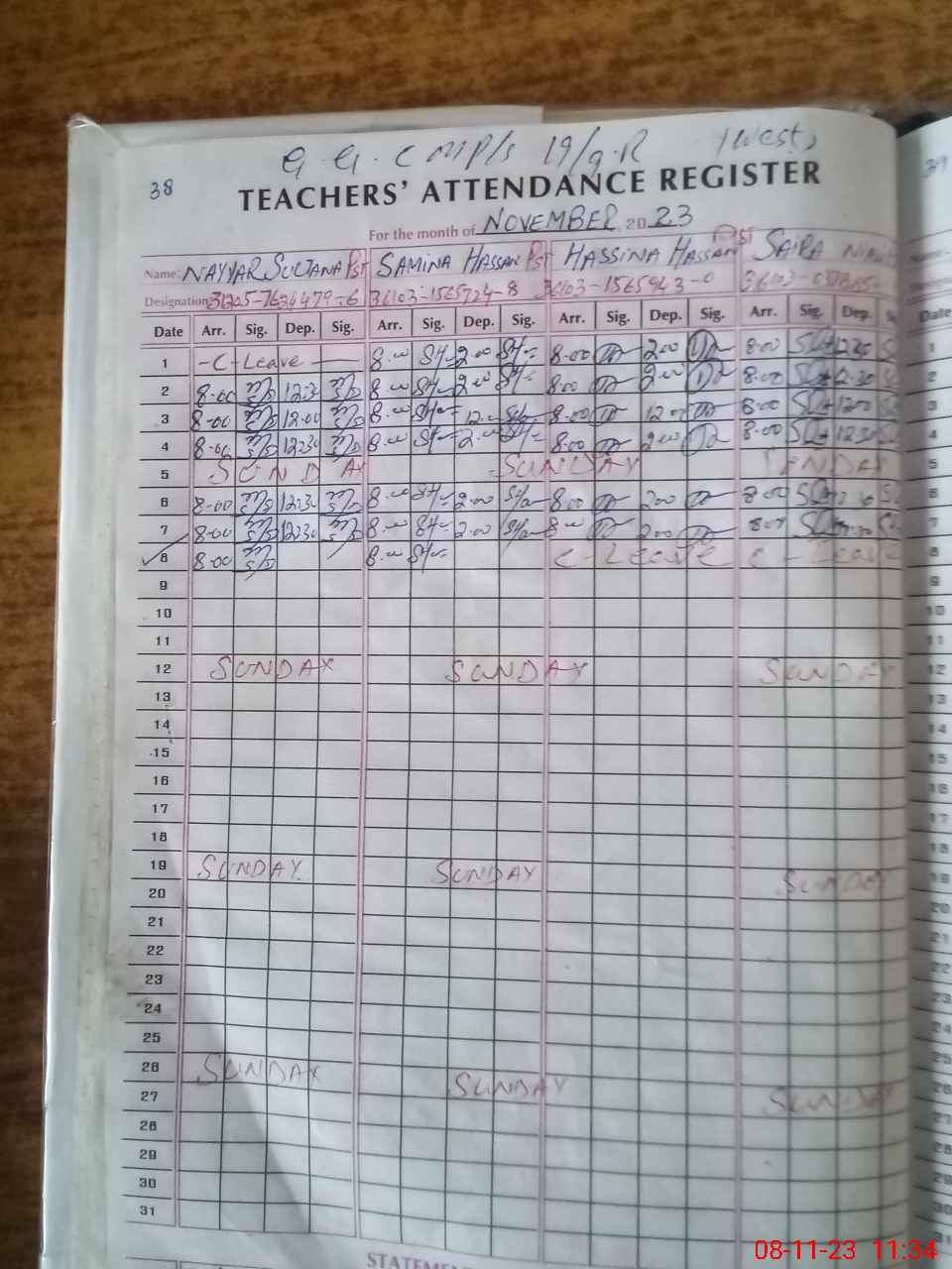 | 36**** | Hu**** Ni**** | S.S.T.(GENERAL) | Temporary | 1 | 0 | 0 | 0 | 0 | 0 | 0 | 0 | 1 | Casual |