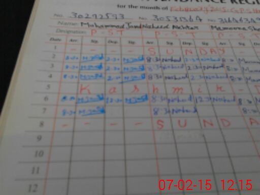 | CNIC | Full Name | Designation | R/C | Absence During Last Calender Month |