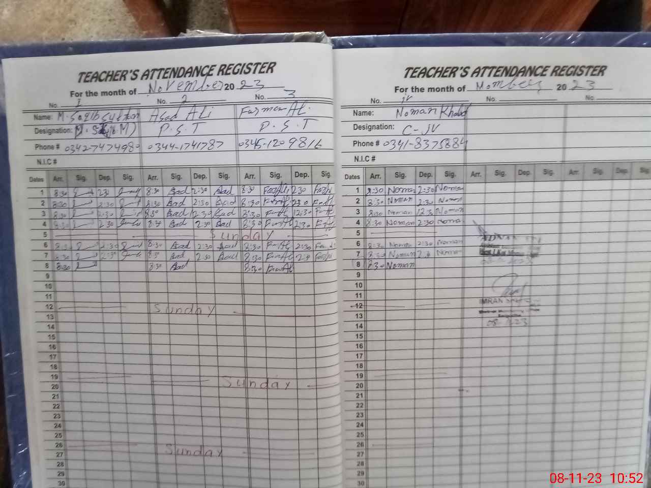 | Name: As**** Al**** Designation: (School Headmaster's/Headmistress's) PST Phone/Cell Number: 03**** |