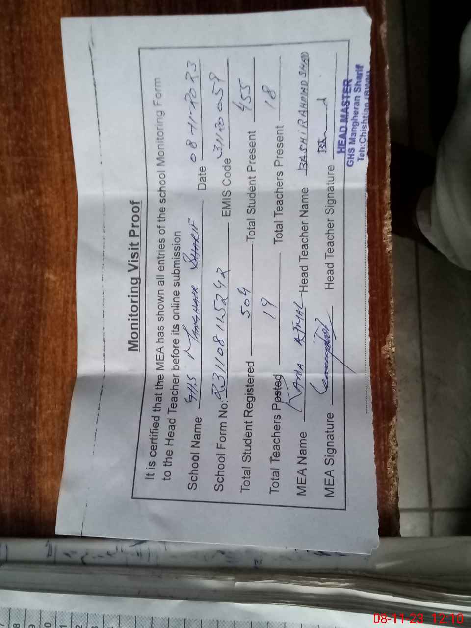| EMIS Code: 31120059 | Name of School: GHS MANGHERAN SHARIF | |||