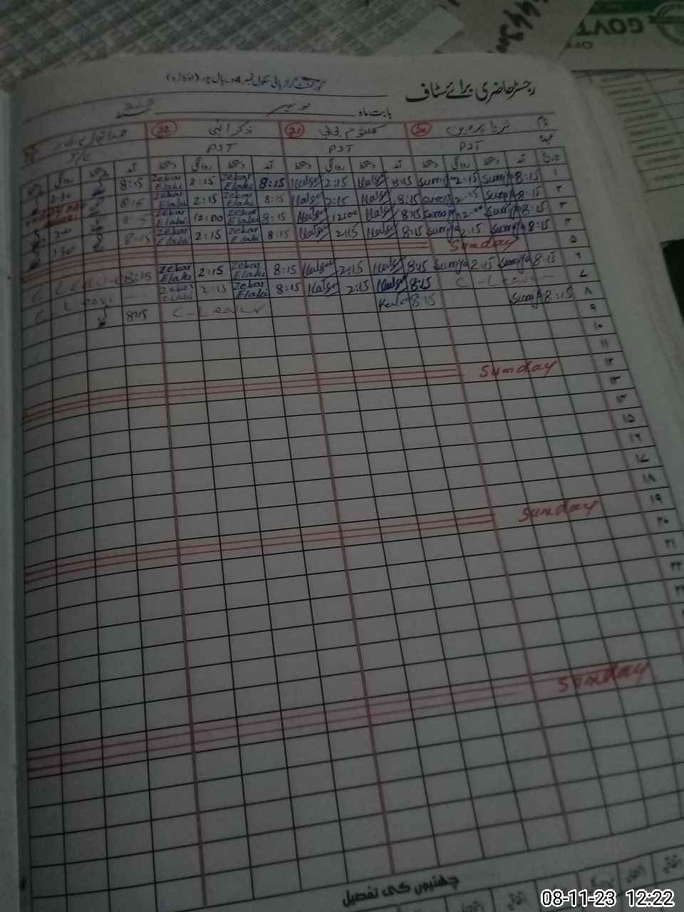 | CNIC | Full Name | Designation | R/C | Absence During Last Calender Month |