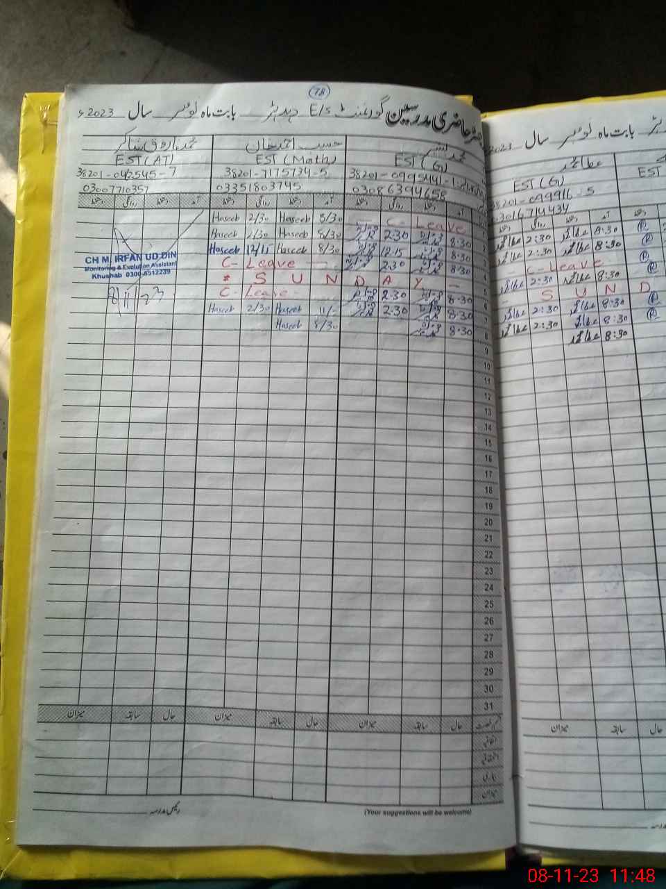 | Name: Mu**** As**** Designation: (School Headmaster's/Headmistress's) SST General Phone/Cell Number: 03**** |